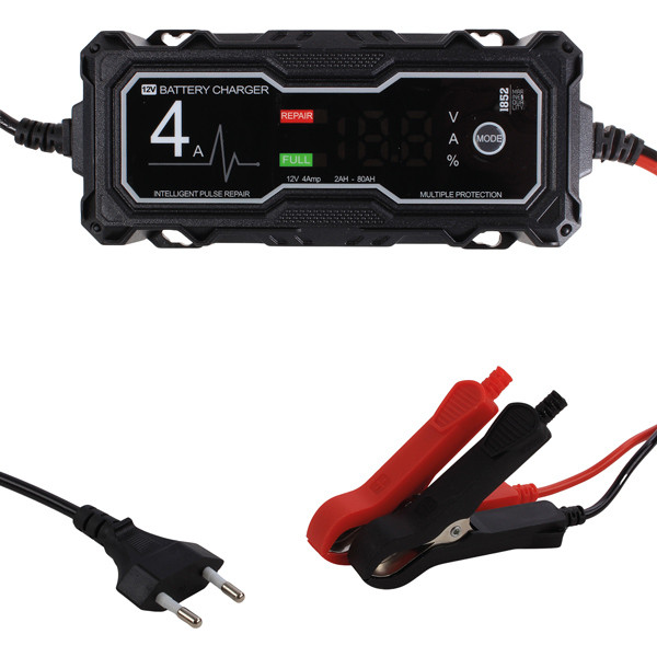 Til standard bilbatterier (40-80 Ah) er 4A lige det rigtige – sikker og effektiv opladning.