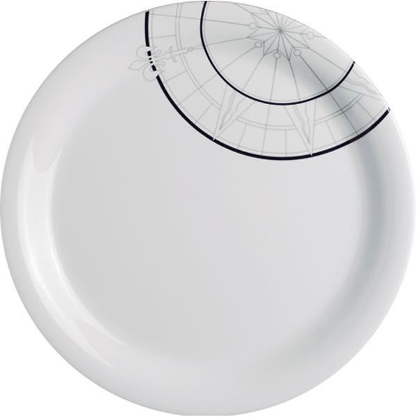 New Polaris er Kraftigt brudsikkert melamin service. Hvidt med kompas mønster