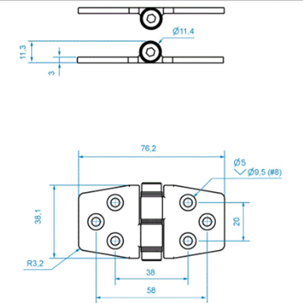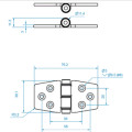 Roca friktionshængsel 38x76mm 6 skruehuller 180° AISI304