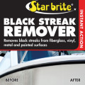 Fjerner let sorte striber fra gelcoat, vinyl, metal og lakerede overflader. Spray Star Brite Black Streak Remover direkte på det stribede område. Lad det virke i 30 sekunder og tør af med en ren klud. Skyl godt efter med rent vand. Hårdt ramte områder kan kræve flere behandlinger.