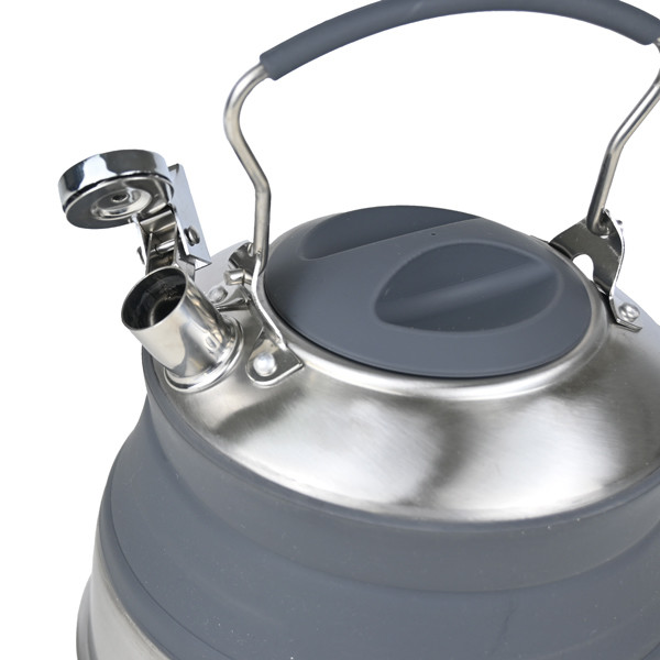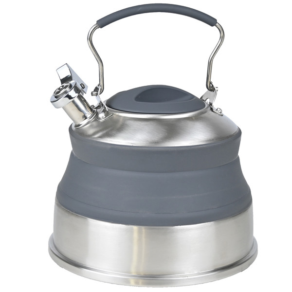 Smart foldbar fløjtekedel med en kapacitet på 2 liter, perfekt til dig, der ønsker at spare plads i køkkenet eller på turen. Kedlen er fremstillet af rustfrit stål og varmebestandig silikone, og alle materialer er fødevaregodkendte. Den kompakte konstruktion gør den nem at opbevare, når den ikke er i brug. Ideel til camping, båd eller små køkkener.