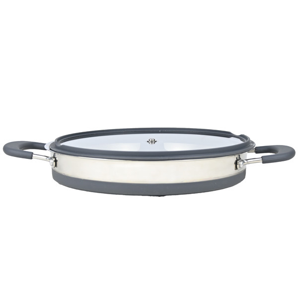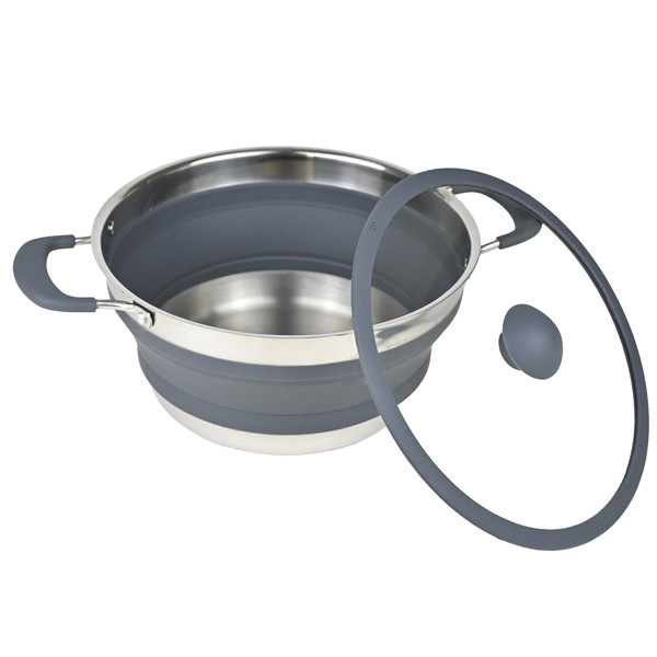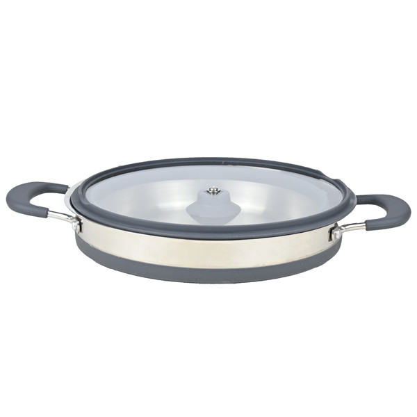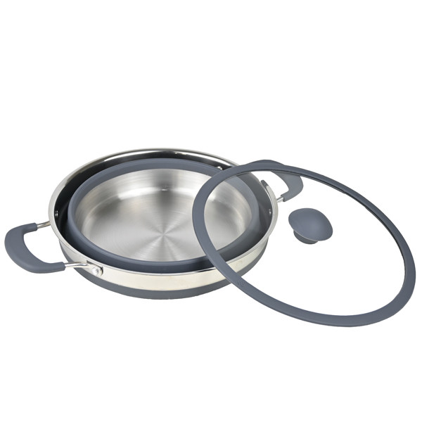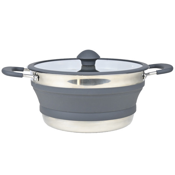 Praktisk foldbar gryde med en kapacitet på 3 liter, ideel til dig, der ønsker at spare plads i køkkenet eller på turen. Gryden er fremstillet af rustfrit stål og silikone og leveres med glaslåg. Alle materialer er fødevaregodkendte. Den kompakte konstruktion gør den nem at opbevare, når den ikke er i brug. Perfekt til camping, båd eller små køkkener.
