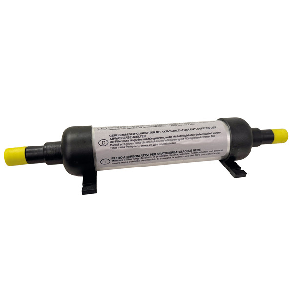Det aktive kulfilter fjerner effektivt lugt fra septiktanke, der kommer fra udluftningsslangen. Generes du af lugten fra tankindholdet, løser dette filter problemet. Monteres let med et par spændebånd, et tilgængeligt sted på udluftningen.