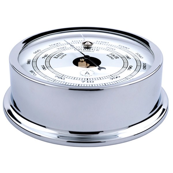 Med en diameter på 120 mm og en hvid skive giver barometeret et tidløst og elegant udtryk, mens det robuste kabinet i forkromet messing sikrer lang holdbarhed og modstandsdygtighed mod det maritime miljø. Instrumentet er udstyret med en temperaturkompenseret, fuldt justerbar aneroidmekanisme, som garanterer nøjagtige målinger under alle forhold.