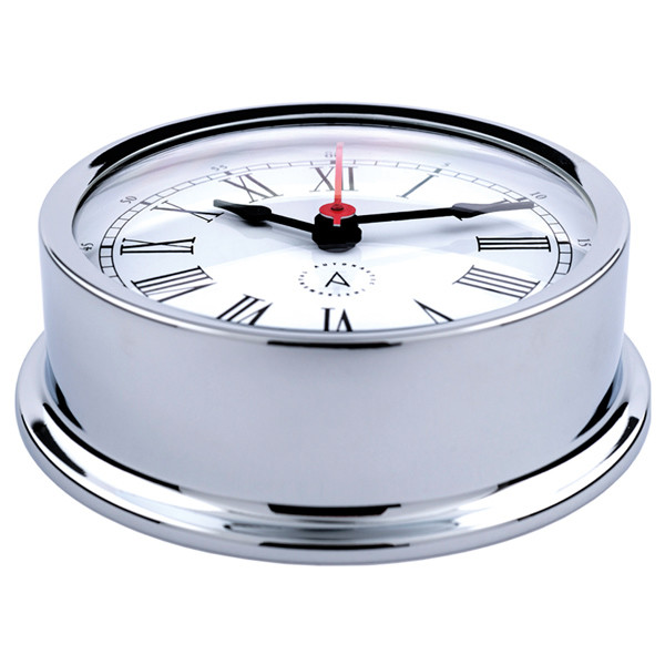 Med en base på 120 mm og en hvid skive med romertal giver uret et tidløst udtryk, mens det robuste kabinet i forkromet messing sikrer lang holdbarhed og modstandsdygtighed mod det maritime miljø. Uret er udstyret med et Quartz-værk med en frekvens på 32.786 KHz, hvilket garanterer præcis tidtagning under alle forhold.