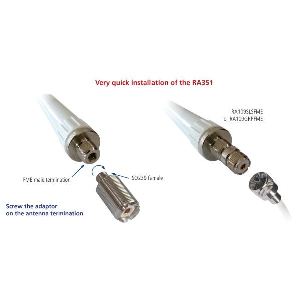 Ønsker man kun en ny Glomeasy antenne og har de ”gamle” stik købes denne adapter.Glomeasy adapterstik FME hun til SO239 hun.