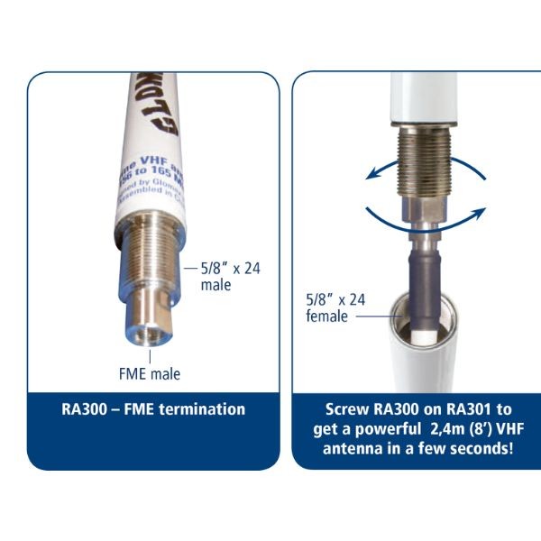 Glomeasy VHF antenne har en special FME hurtig monteret forbindelse, som gør installetionen hurtig og sikker!· Ingen lodning, krimpning eller afkortning af kabler