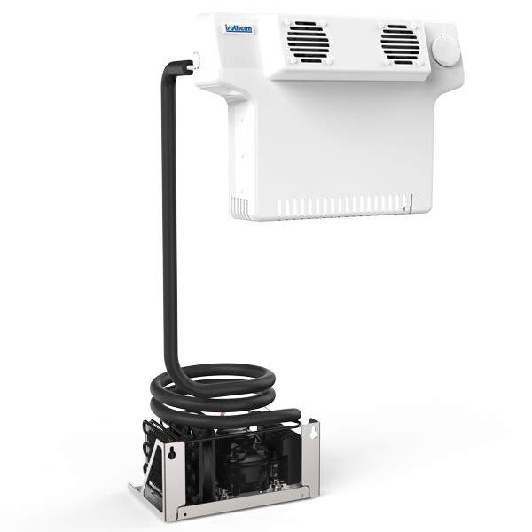 Anvendes typisk til kølerum omkring 200 liter, afhængigt af isolering og brugsmønster. Fordamperen kan monteres direkte i kølerummet, mens kondenseringsenheden placeres separat med op til 2000 mm afstand.