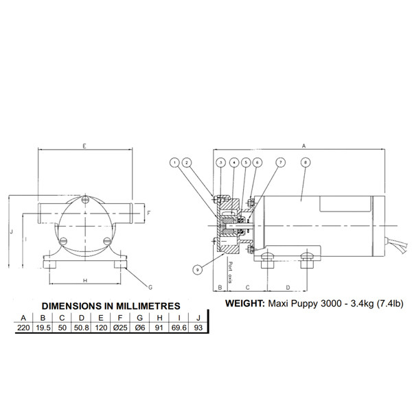 Jabsco spule/lænsepumpe "Maxi Puppy" 24V 44lpm