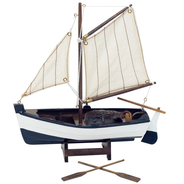 Bring kystens charme ind i dit hjem med vores modelsejlbåd med årer. Lavet af træ og færdiggjort med bomuldssejl, indfanger dette dekorative skib essensen af nautisk stil.