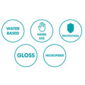 Ryst flasken og spray et tyndt lag på overfladen. Fordel produktet med en ren mikrofiberklud. Aftør efter få sekunder, til overfladen fremstår klar og glansfuld. Gentag om nødvendigt for ekstra beskyttelse eller ved større arealer.