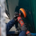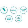 3 Polering: Kør med polermaskine ved moderat omdrejning og jævnt tryk. Arbejd i overlappende baner.