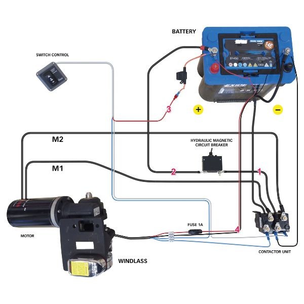Balder ankerspil kit fra Quick leveres med kontrolboks, sikring, autostopkit samt kabler til montering.