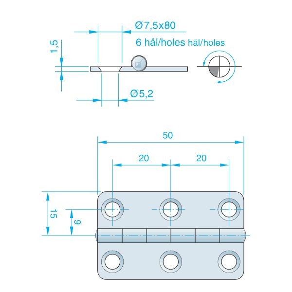 Roca hængsel RF, 30x50mm