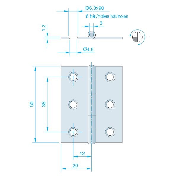 Kanthængsel af rustfrit stål AISI 304