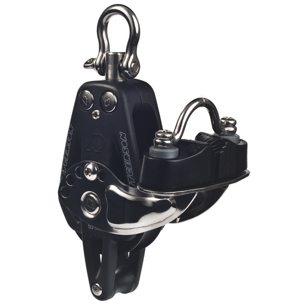 Denne enkeltblok med frølår og hundsvot bruges i trim- og kontrolsystemer, hvor du ønsker både let lineføring og mulighed for at fastlåse linen direkte på blokken. Den er relevant for sejlere, der arbejder med mindre udvekslinger, justeringer tæt ved mast eller bom, eller kontrolpunkter i cockpit, hvor hurtig betjening er afgørende. Blokken giver et fast, kompakt og funktionelt punkt i riggen. Enkeltblokken er udført med kompositskive og kompositsider og roterer på et sfærisk glideleje. Det giver en jævn gang og lav friktion, også når linen er belastet i korte ryk. Frølåret fungerer som en kilelås, der fastholder linen uden separate beslag, mens hundsvoten bruges som fast ende eller tilkoblingspunkt i et udvekslingssystem. Hele konstruktionen er udviklet til maritim drift med minimal vedligeholdelse.Blokken bruges typisk i trimfunktioner som små udvekslinger, cunningham, kick, kontroliner eller andre steder, hvor du kun arbejder med én primær line. Den kan monteres ved mast, bom eller cockpit og fungerer sammen med almindelige tovværkstykkelser ombord. Den kan indgå både som erstatning for en eksisterende blok eller i opbygningen af et nyt, mere effektivt rigsystem.