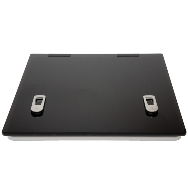Flush‑monteret luge i komposit og 12 mm tonet akrylglas med skjulte beslag