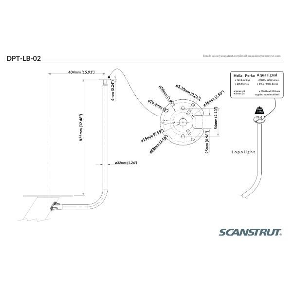 Lanterneholder til Dual PowerTower passer til radar på Ø:600 mm / 24"