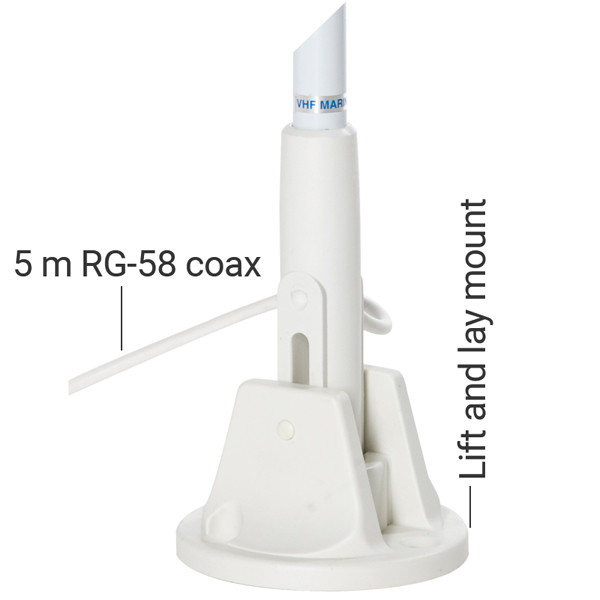 Kompakt 1,5 m VHF‑antenne til motorbåd med foldbarbeslag og 5 m RG-58 coax kabel & PL-259 stik