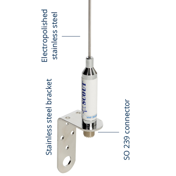 Scout KM-3A VHF stålpisk antenne 0,9m med aluminium vinkel beslag