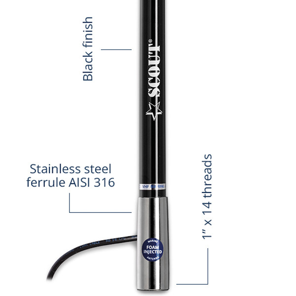 KS‑120 sort er en kompakt FM‑antenne til bådinstallationer, hvor du ønsker stabil radiomodtagelse i et robust design. Den korte antennelængde gør den nem at placere på mindre styrehuse og mastetyper uden at gå på kompromis med signalet.Antennekroppen er bygget i 2 mm glasfiber, som giver høj styrke og modstand mod stød og vibrationer. Den elektropolerede ferrule i AISI 316 rustfrit stål sikrer en solid og korrosionsbestandig montering, som tåler hårdt maritimt miljø.
