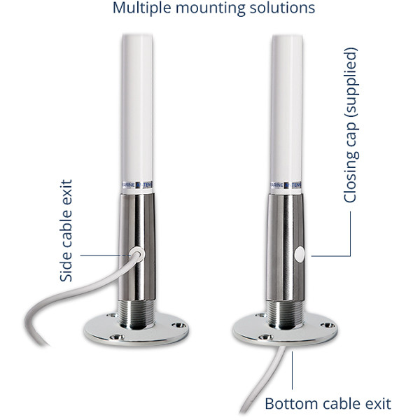 KS‑41 er en kompakt VHF-antenne i TITAN-serien, udviklet til både, hvor pladsen er begrænset, men der stadig er behov for stabil modtagelse og høj driftssikkerhed. Den korte 1,2 m konstruktion gør antennen let at placere på mindre styrehuse, konsoller eller rørmaster.Antennekroppen er fremstillet i 2 mm glasfiber, som giver god styrke og modstand mod vejr og vibrationer. Foden er udført i elektropoleret AISI 316 rustfrit stål med konisk design, hvilket sikrer en solid og korrosionsbestandig montering.